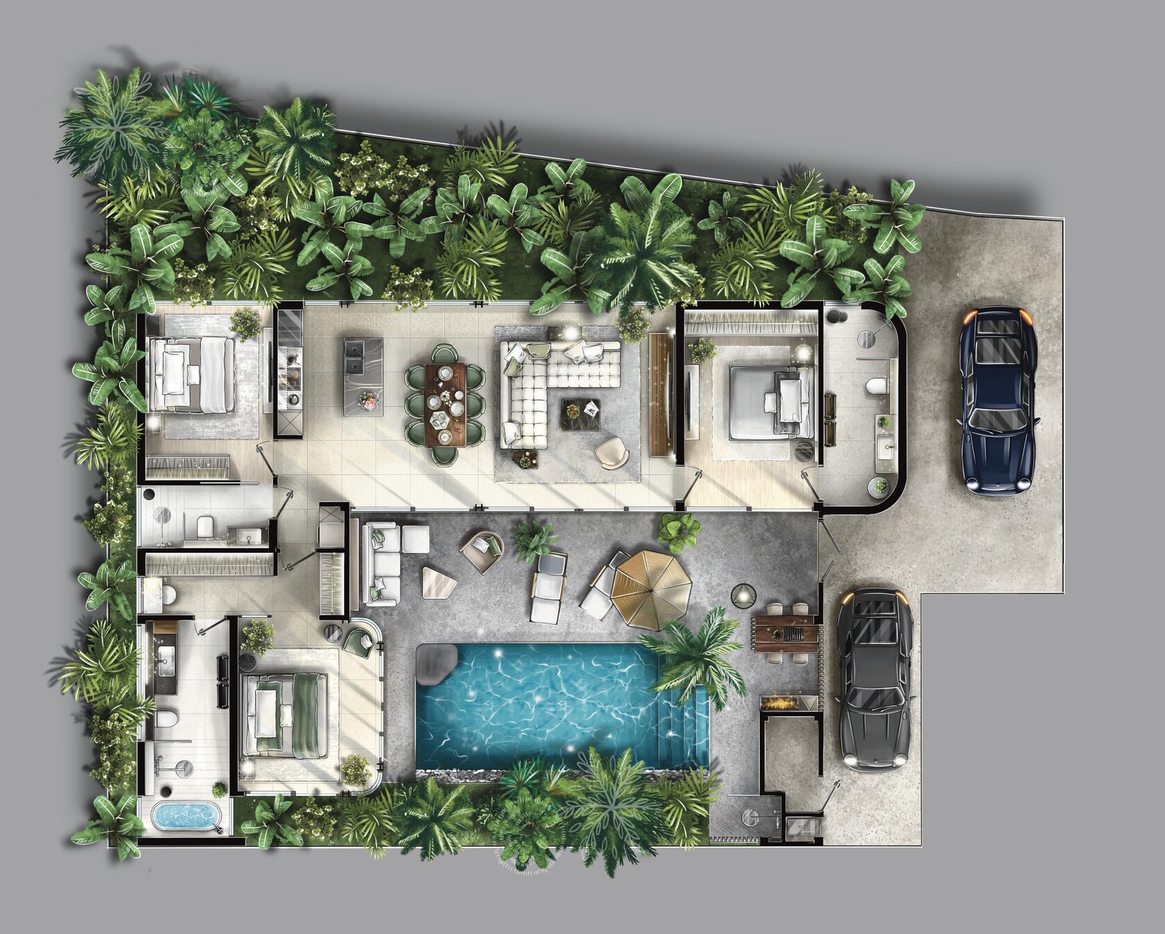 Камерный поселок из 14 вилл в окружении тропиков. Мало соседей = спокойствие и тишина.